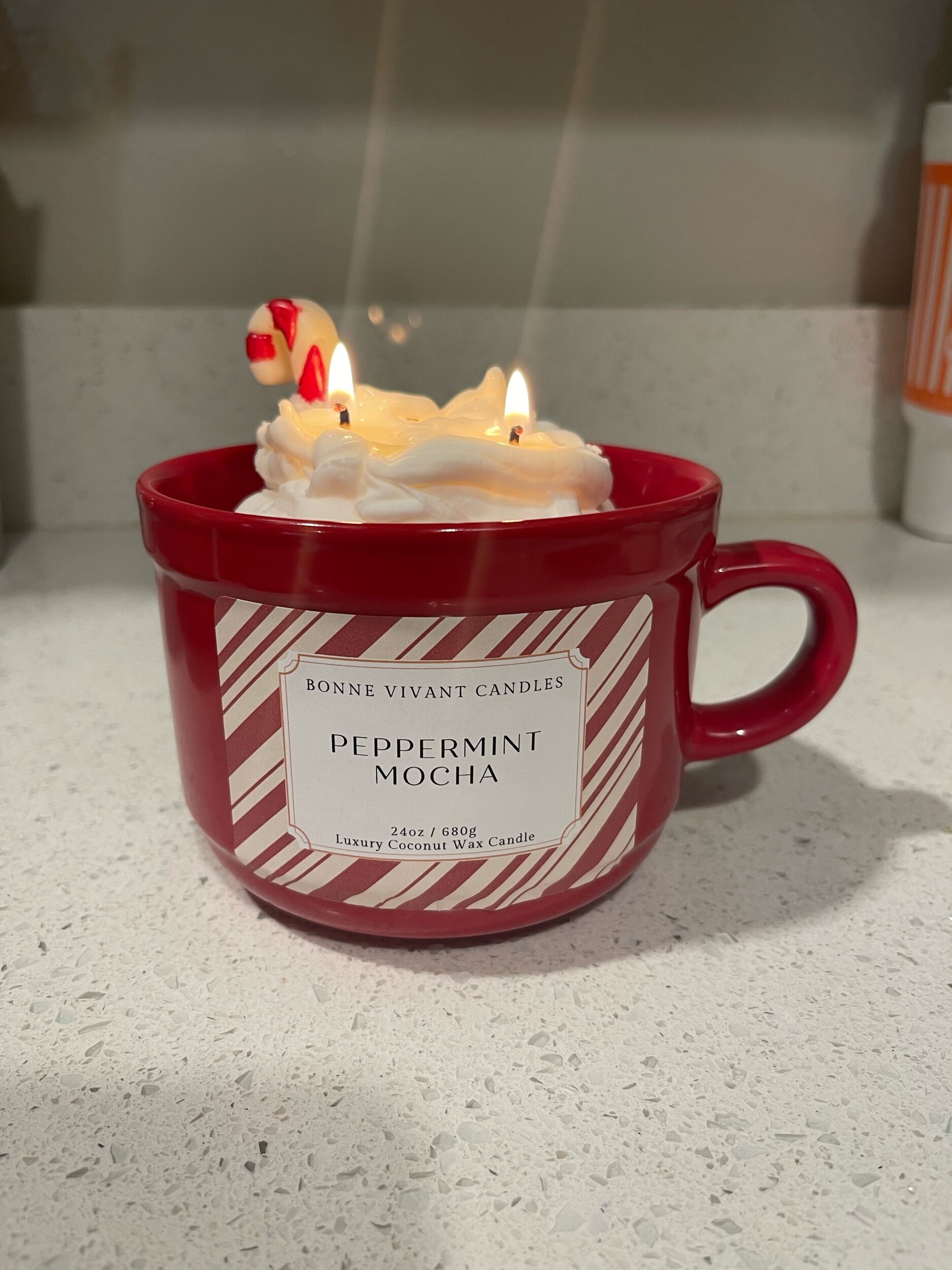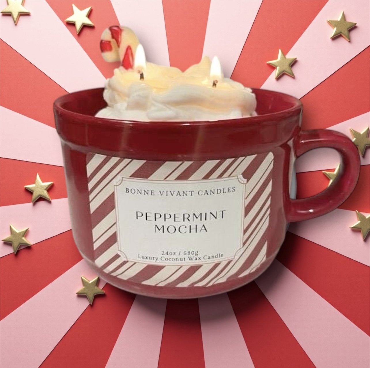 Winter 2025 - Peppermint Mocha - 18oz Scented Coconut Wax Candle - Available 11/1/24